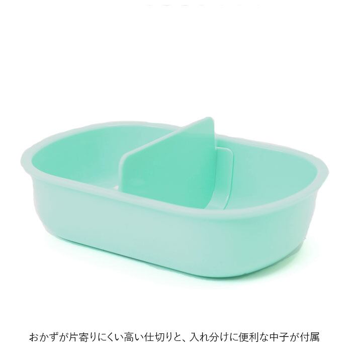 ・おかずが片寄りにくい高い仕切りと、入れ分けに便利な中子が付属。