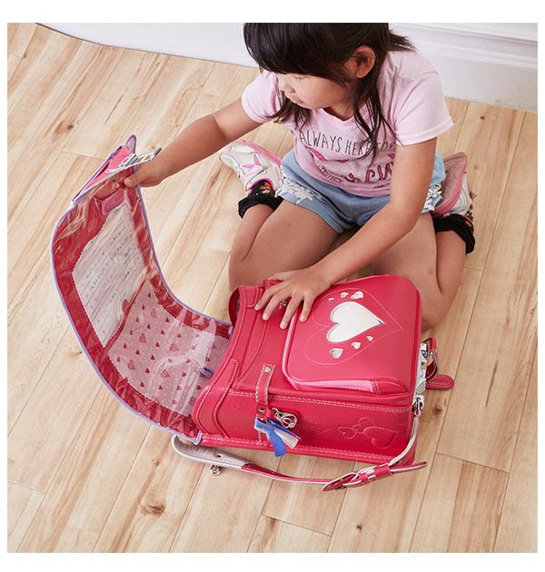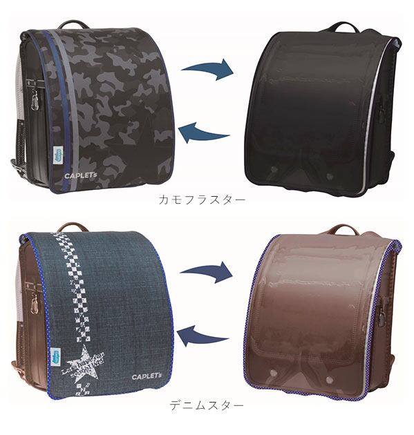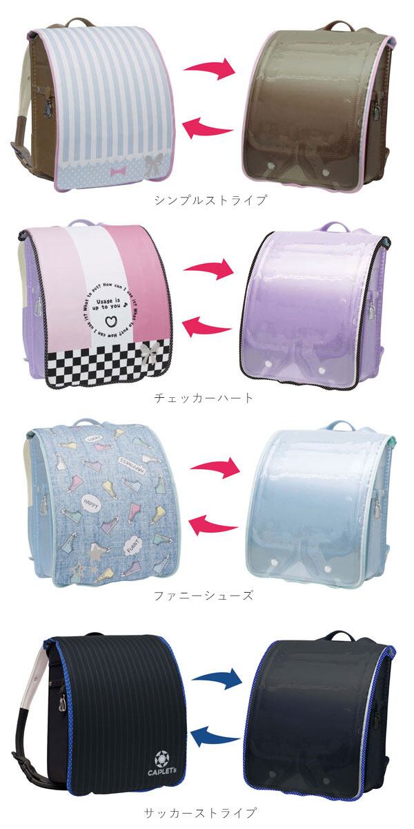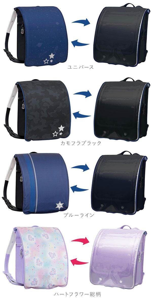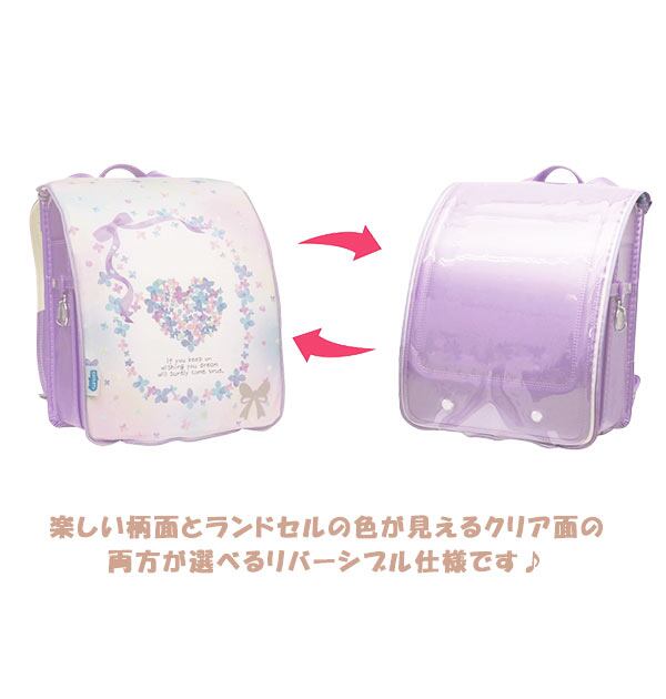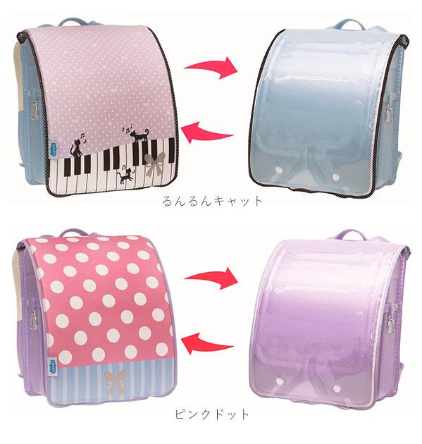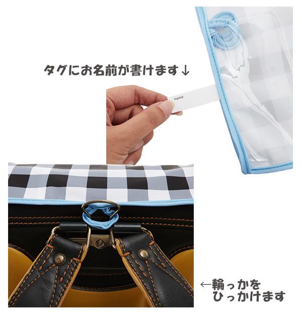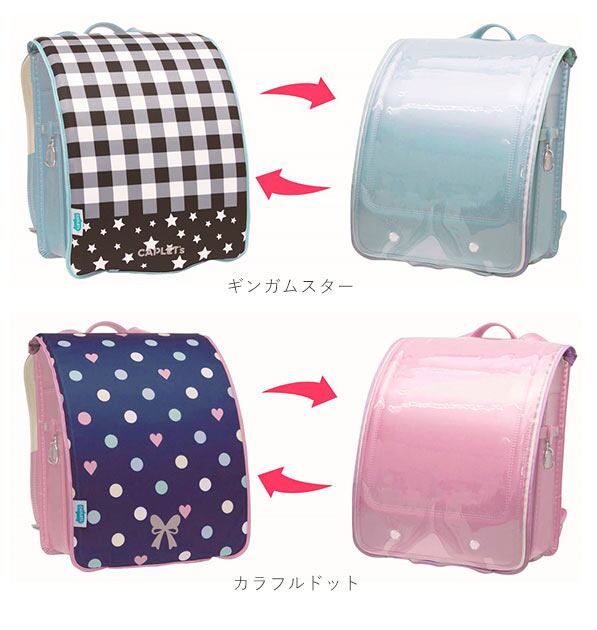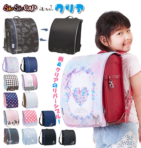 ランドセルをキズから守るカバー。両面使えて2色を楽しめる。いつものランドセルをキズやごみ、撥水加工で水などからも保護、クリア面もあるのでランドセルの色は変わらずカバーできて便利です。