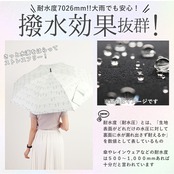 ・傘を開くと直径約97cmとワイドサイズかつ、耐水度7026mmと撥水力も抜群なので雨に濡れにくい◎(※防水加工を施してありますが激しい雨の時は、縫い目及び生地より雨水がしみることがあります。)