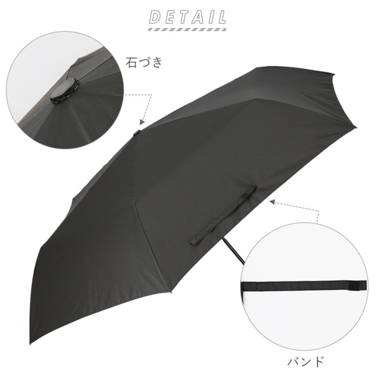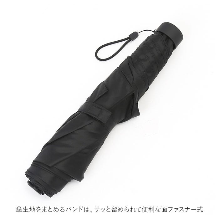 ・傘生地をまとめるバンドは、サッと留められて便利な面ファスナー式。