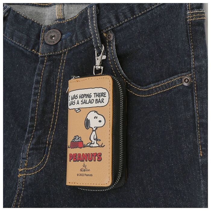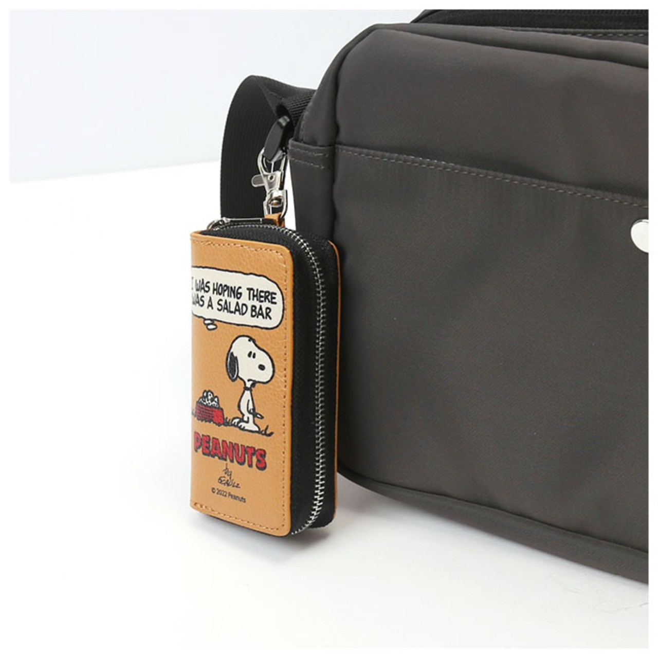 ・シボ感のあるカラーフェイクレザーに描かれた、PEANUTSのレトロなイラストがワンポイント。