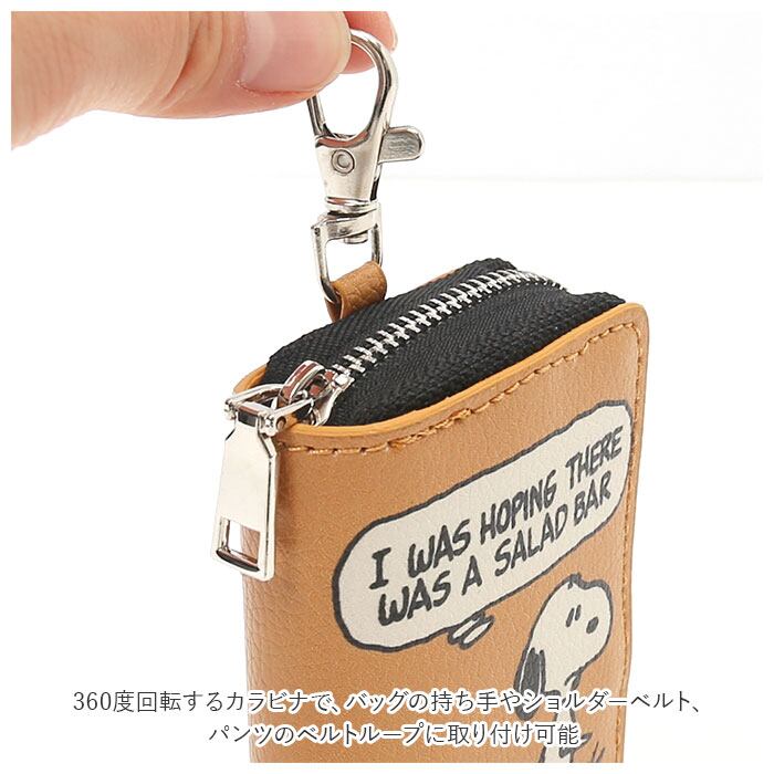 360度回転するカラビナで、バッグの持ち手やショルダーベルト、パンツのベルトループに取り付け可能!