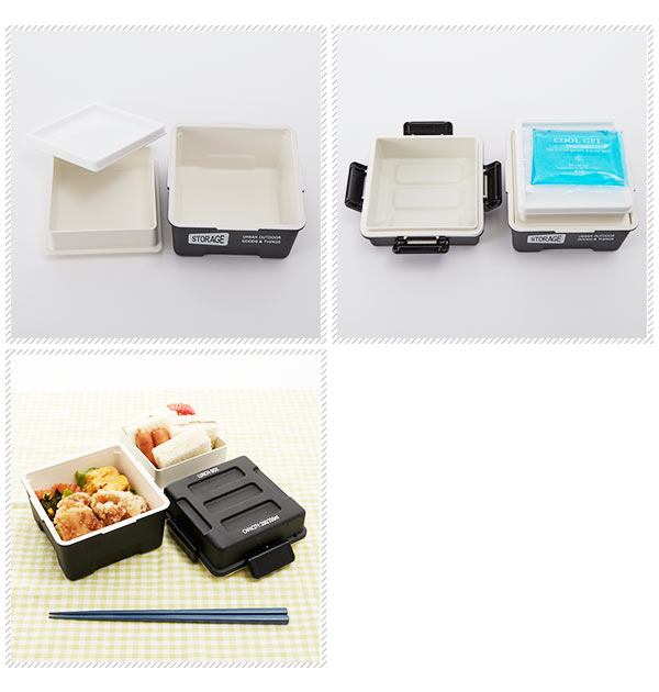 レトロアメリカン風のオシャレなスクエア型2段ランチボックス。4点ロックでしっかり密封、通勤や通学にも安心して持ち運べます。マットな質感の4色展開。中段を取り外すとハンバーガーやサンドイッチなど、高さのあるメニューも潰れることなく入ります。保冷剤付き。