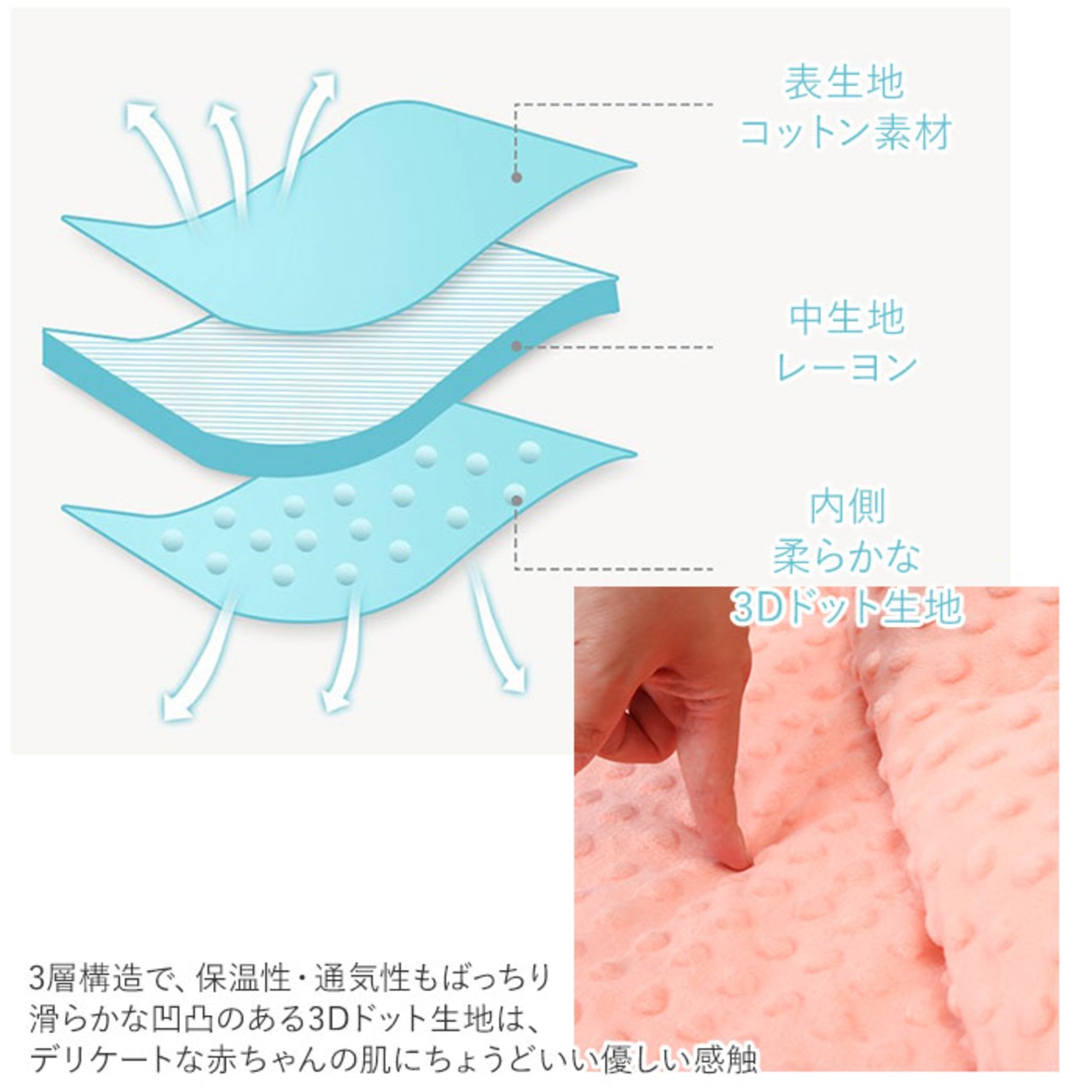 ・滑らかな凹凸のある3Dドット生地は、デリケートな赤ちゃんの肌にちょうどいい優しい感触。