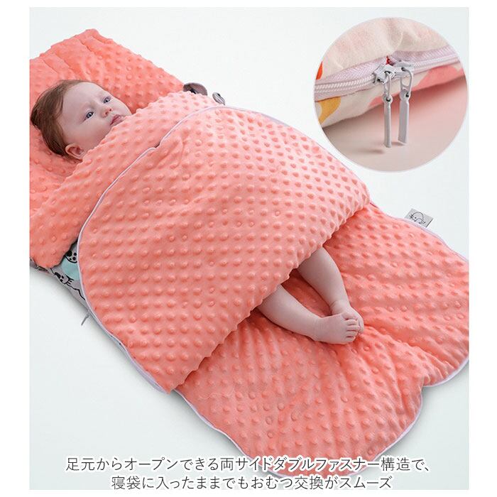 ・ふかふか生地に包まれて、赤ちゃんぐっすり♪ベビー用スリーピングバッグ。