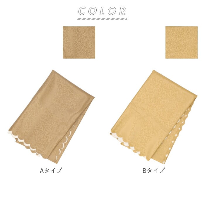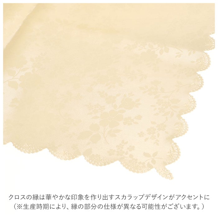 ・クロスの縁は華やかな印象を作り出すスカラップデザインがアクセントに。