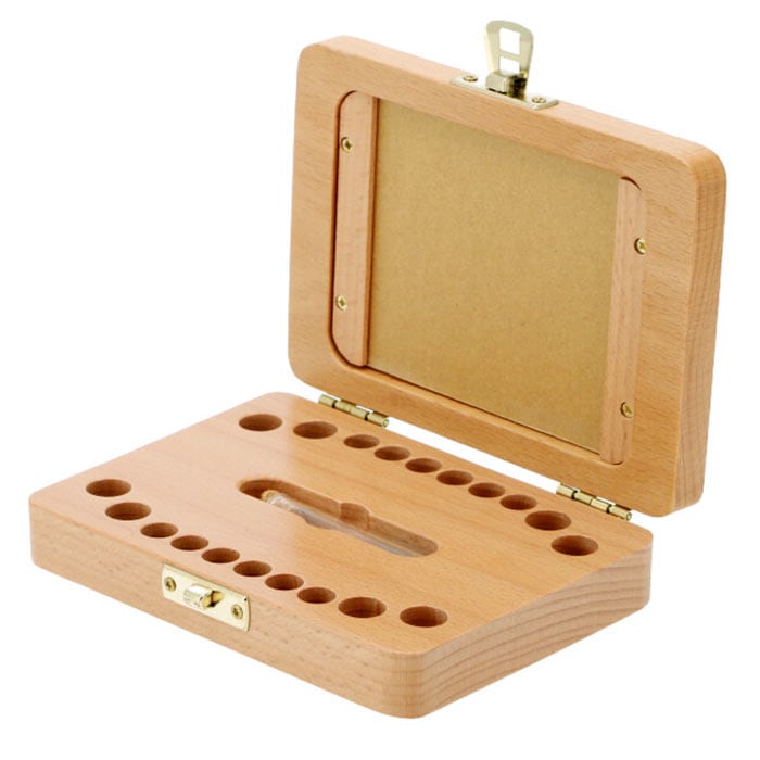 ・写真と一緒に乳歯を保管しておける、木製の乳歯ケース。