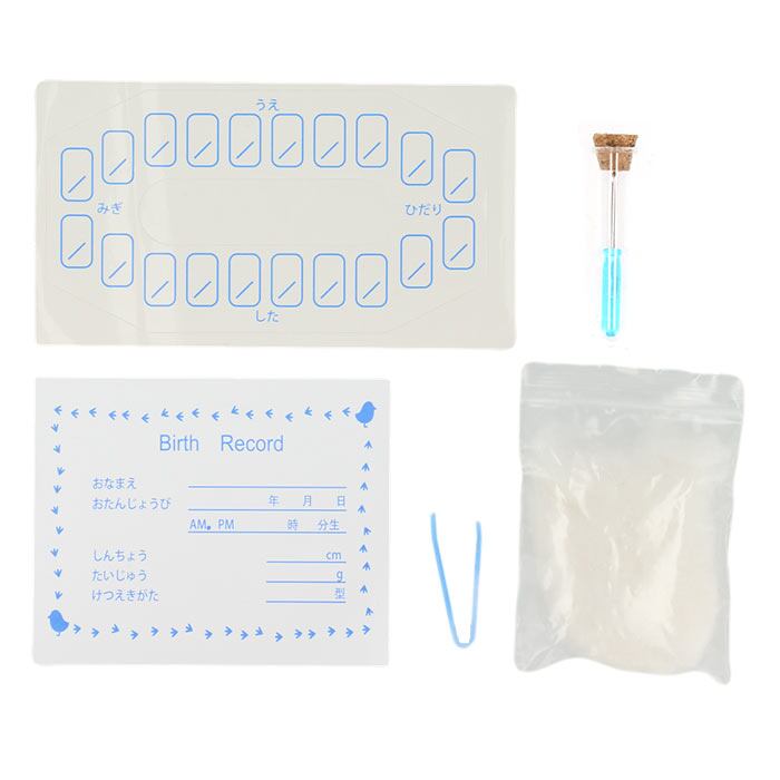 ・セット内容…ケース本体、日付シール1枚(20本分)、Birth Recordシート1枚、ピンセット、脱脂綿、ミニボトル、ミニドライバー