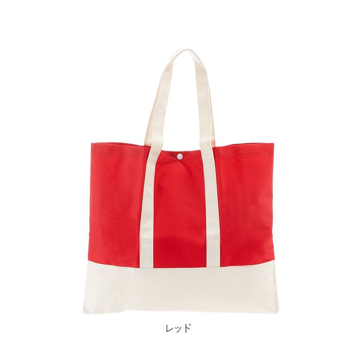 ・底面のボタンをとめるだけ、マチの広いトートに変身
