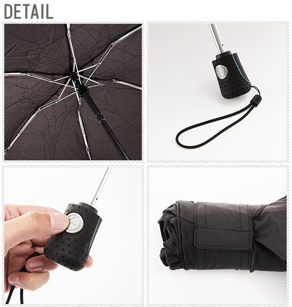 折り畳み時の長さが22cmというコンパクトなサイズの自動開閉折りたたみ傘です。 ストラップが付いているので持ちやすく、スタイリッシュなグリップには、象徴的なシングルラインがデザインされ、シンプルかつ上品なデザインに仕上がっています。