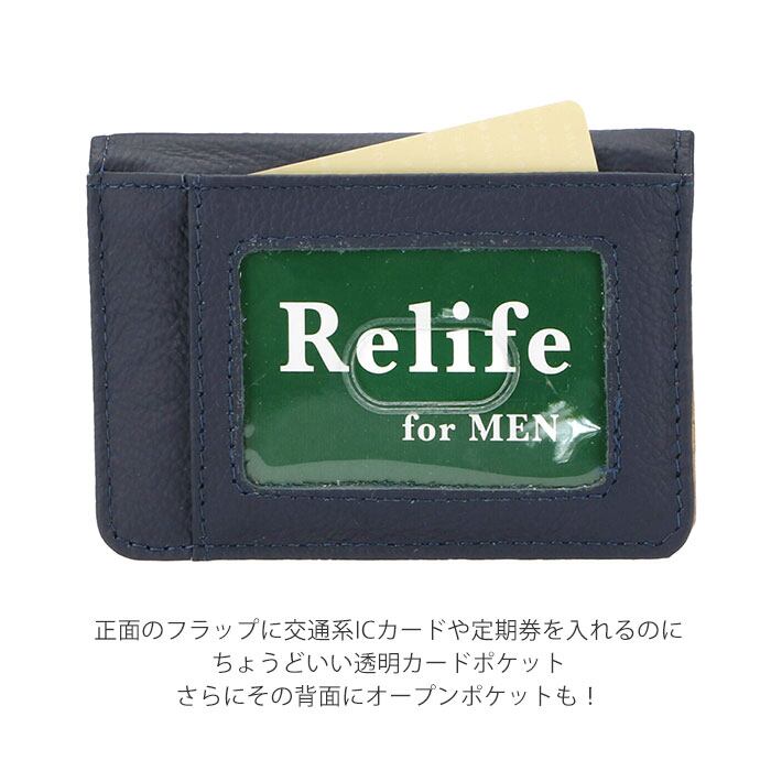 ・フラップを開いた内側にも透明カードポケットがあり、社員証などのICカードがもう1枚入れられる。その他、内側にポイントカード等を収納可能なカードポケットが4ヶ所。シンプルな外観以上の収納力。