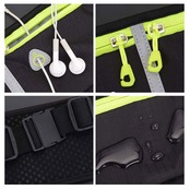 ・メインポケットはスマホの収納にピッタリ。6.6インチのスマホが入るサイズ感。イヤホンコードホールも付属しているので、音楽を聴きながらウォーキングやランニングが存分に楽しめる。