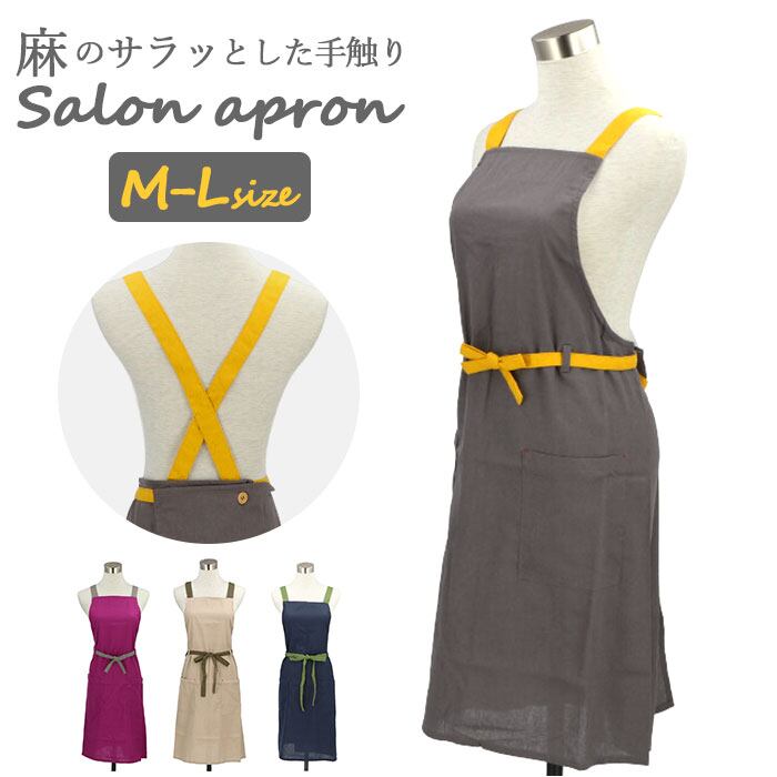 エプロン おしゃれ 通販 前結び ロング丈 保育士 オシャレ 麻混 大人 カフェエプロン シンプル ポケット キッチンファブリック かわいい ガーデニング 敬老の日 母の日 プレゼント