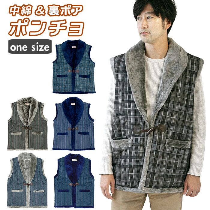 ポンチョ メンズ 通販 紳士 中綿ポンチョ 中わたポンチョ 中綿 中わた 裏 ボア あったか 防寒 ゆったり ブルー グレー ブラック ネイビー チャコール