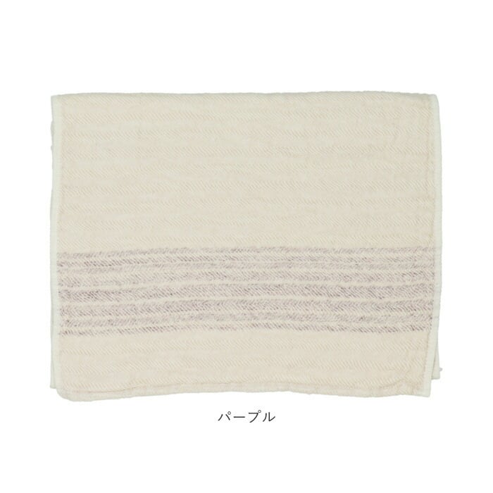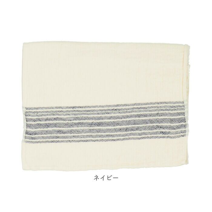 ・ガーゼ地のカラーは、アイボリーとベージュの2パターン。杢調のシックなカラーのラインをあしらった、ナチュラルでシンプルなデザインのタオル♪