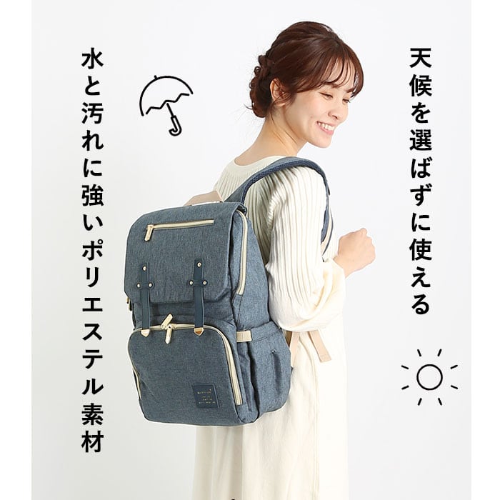 ・水と汚れに強いポリエステル素材なので天候を選ばずに使えるのもうれしい。