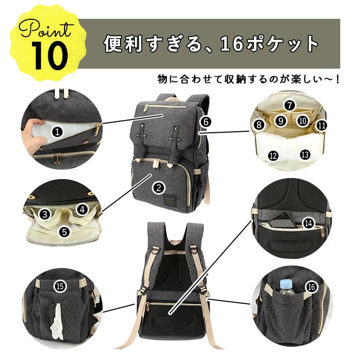 ・ママさんの事をより考えた高機能16ポケットマザーズバッグが登場。