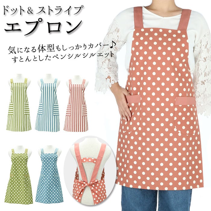 エプロン h型 おしゃれ 通販 ナチュラル 安く て かわいい レディース ショート丈 大人 可愛い ワンピース 保育士 カフェエプロン ポケット付き シンプル 母の日 ドット ストライプ コットン 綿 レッド グリーン ブルー
