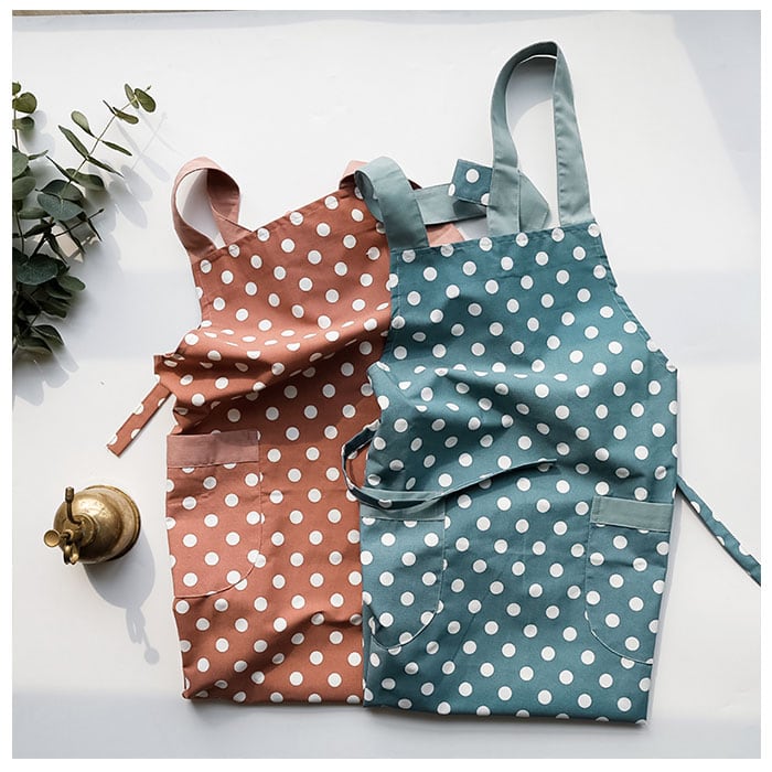・ハツラツと明るい印象の、ドット柄とストライプ柄のエプロンが登場♪