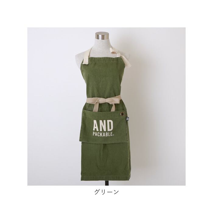 【廃盤】エプロン おしゃれ カフェ 通販 メンズ レディース 保育士 シンプル ナチュラル 大きいサイズ フリーサイズ AND PACKABLE アンドパッカブル 折りたたみ パッカブル コンパクト