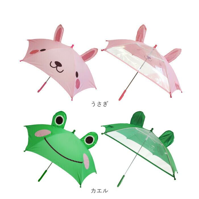 傘 子供用 45 通販 45センチ 男の子 女の子 キッズ 子ども 45cm こども 子供 手開き 透明窓 耳付き おしゃれ かわいい どうぶつ アニマル santos サントス 耳付きアニマルアンブレラ JK-100 子ども傘