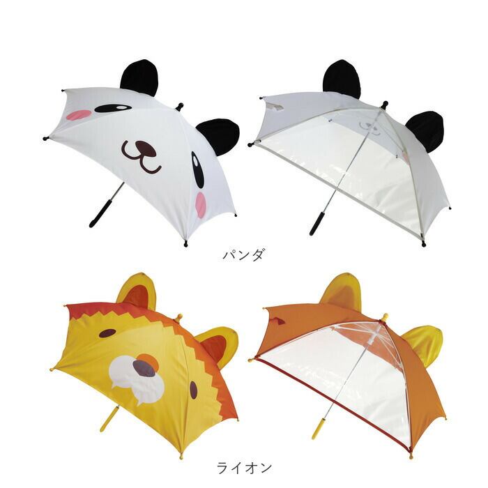 ・絵本や動物園など、様々な場所で見たことがある動物たちがモチーフとなった、立体的な耳などがついたとってもかわいい傘♪