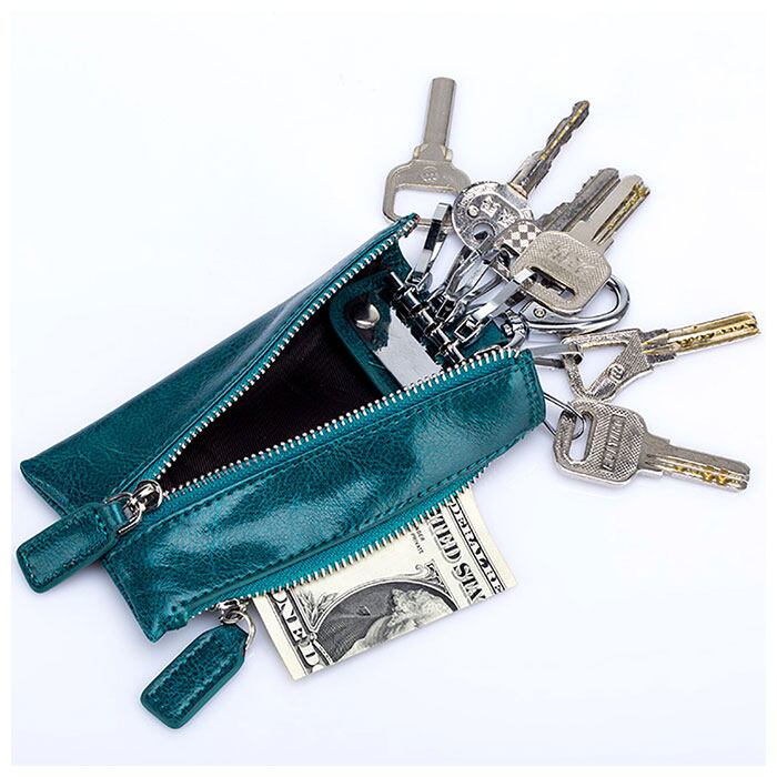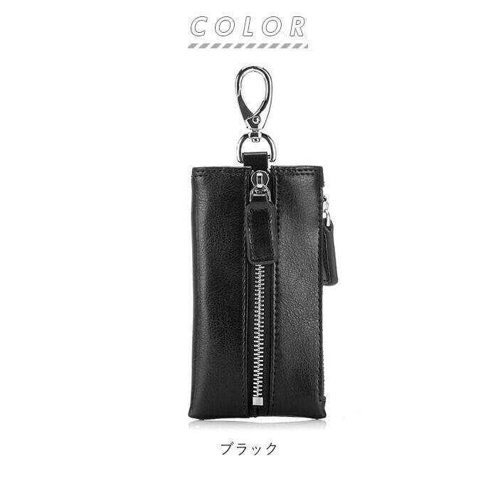 ・中央の縦型ファスナーを開いて内側に、ご自宅の鍵などを収納できる6本のフックを搭載したシンプルな構造。自動車用スマートキー(キーレスキー)にも対応したサイズ。