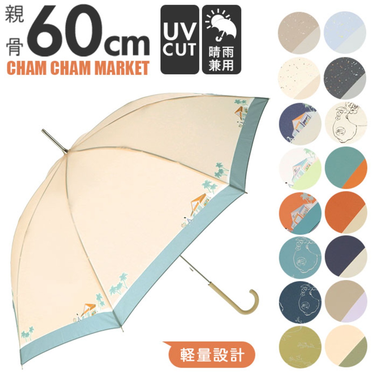 傘 レディース 軽い 通販 長傘 かさ UVカット 晴雨兼用 軽量 デザイン カラフル ポップ 60cm 手開き 手動オープン CHAM CHAM MARKET チャムチャムマーケット おしゃれ シンプル 大人 かわいい 雨傘 レディース雨傘