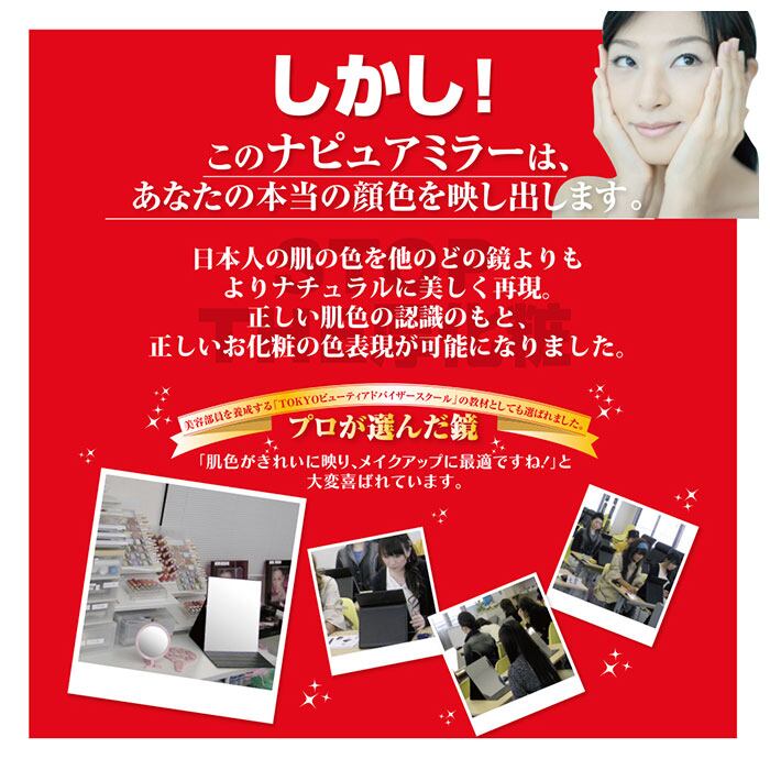 ・プロの美容部品も支持する「ナピュアミラー」は、透明度の高いガラスと真空蒸着製法による反射金属を使用して仕上げた特別な鏡のこと。
