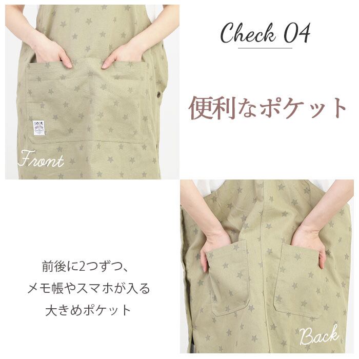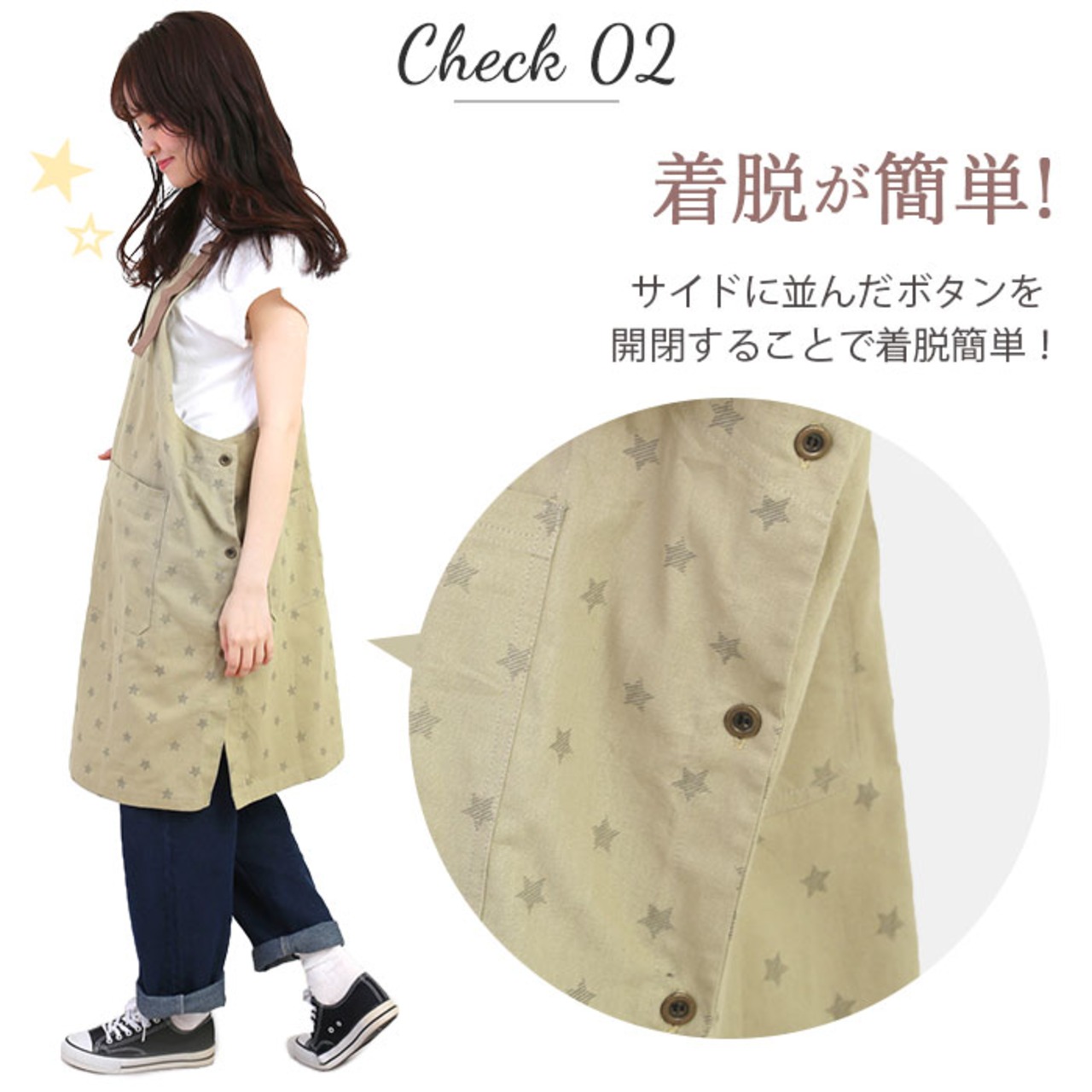 ・エプロンのサイドに並んだボタンを開閉することで着脱がより簡単に。