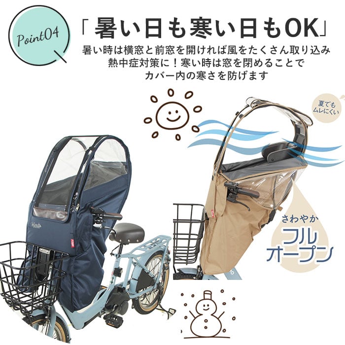 ※カバーは高さを調節できますが、運転者の身長や自転車の種類によっては前方が見えにくくなります。ご注意ください。