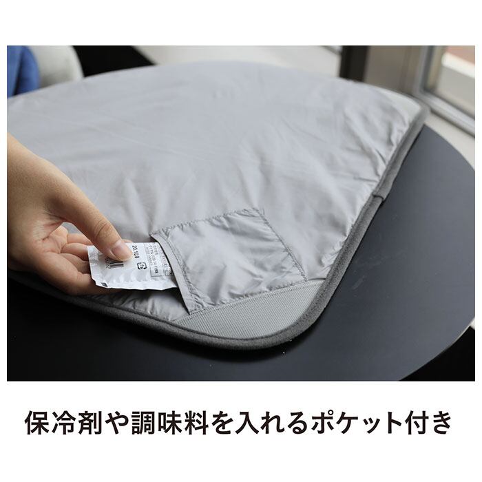 ・内側に保冷剤、調味料を入れられるポケット付き。散らばずに一緒に包める嬉しい機能♪
