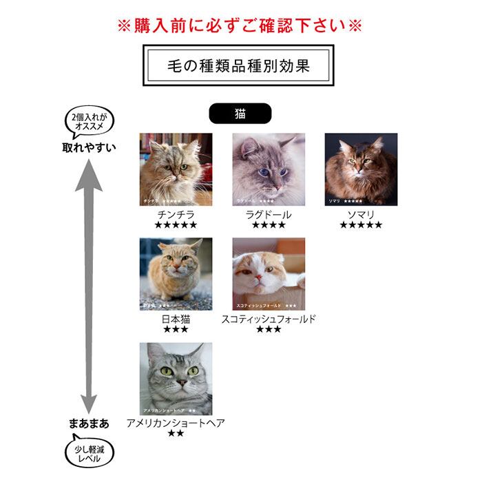 ※衣類に絡まっているような一部の毛は取り除くことはできません。
