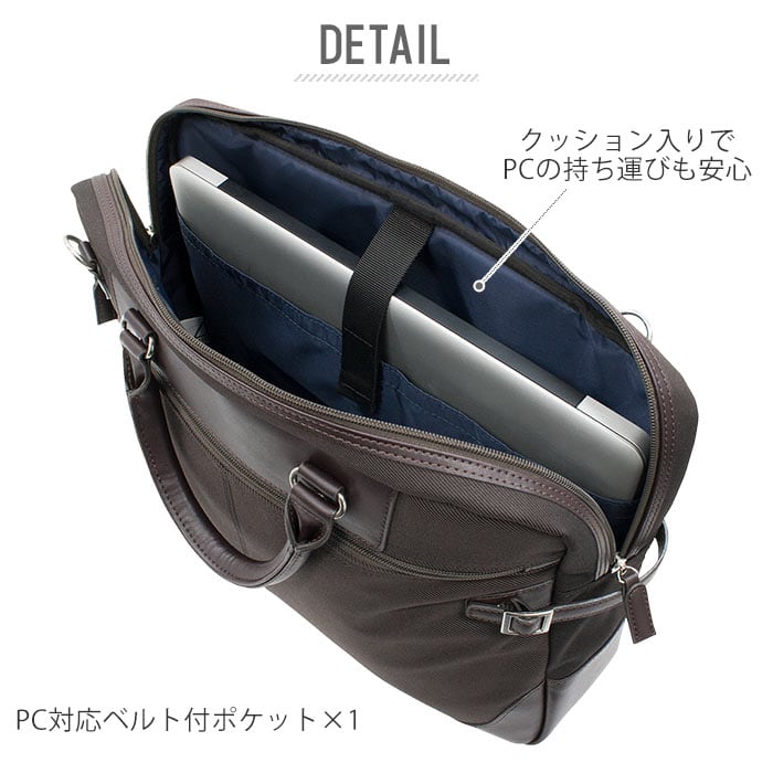 ・メイン収納内に、ノートPC対応のベルト付ポケットを完備。移動中もずれにくいので安心して持ち運びできる。