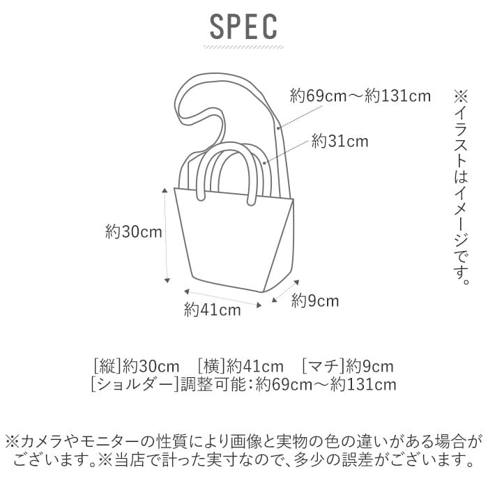 [ショルダー]約69cm〜約131cm(調整可能) [持ち手]約31cm