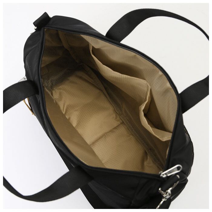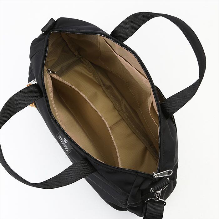 ・メインルームはマチがあり、長財布やポーチ、B5サイズのノートなどがすっぽり収まるサイズ感。ファスナーポケット×1、オープンポケット×2を装備。