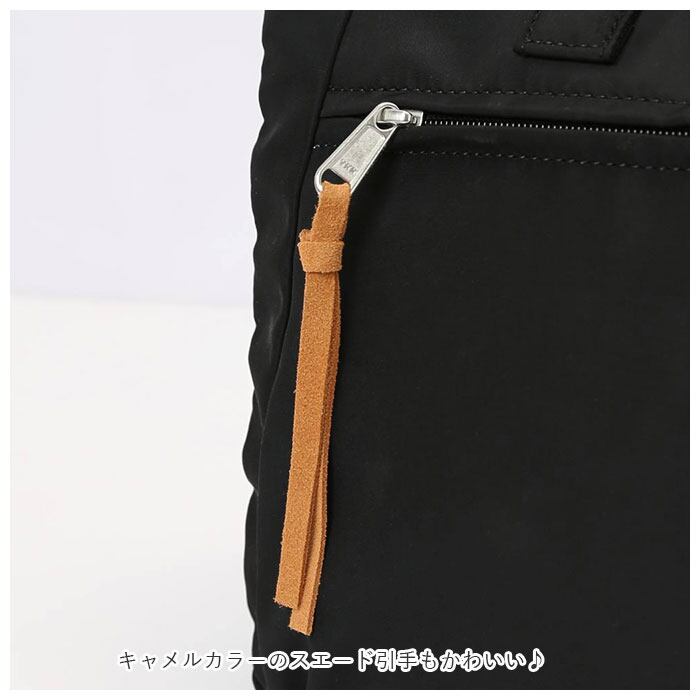 ・キャメルカラーのスエード引手や、フロントに配置されたブラックカラーのブランドロゴ入りタグがポイント♪