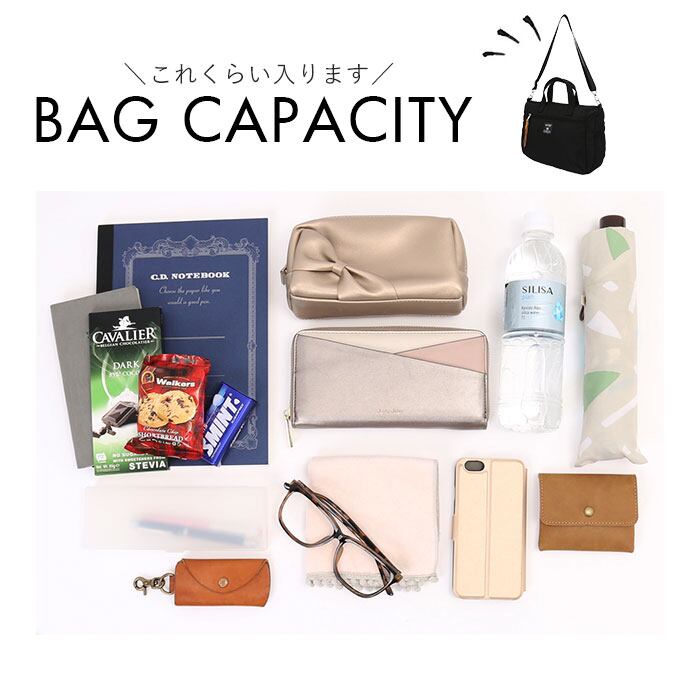 ・手持ちだけでなく、取り外し&長さ調節可能なショルダーベルトを取り付けて、肩掛けや斜め掛けもできる2way仕様。