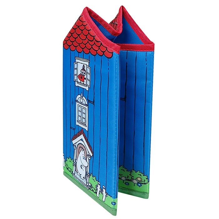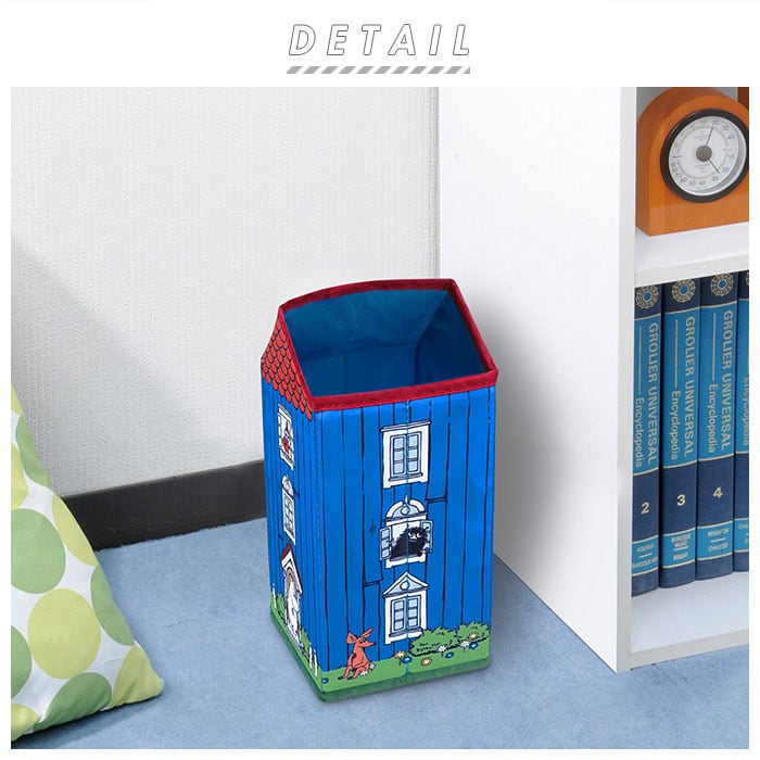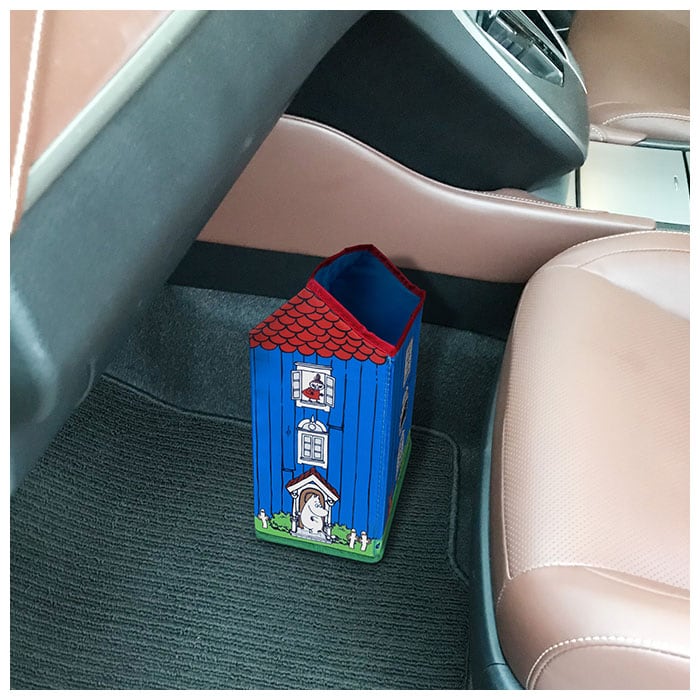 ・青いペンキ塗りの外壁に、赤い三角の屋根が車内で映える☆ムーミンのおうちがキュートなダストボックスに♪