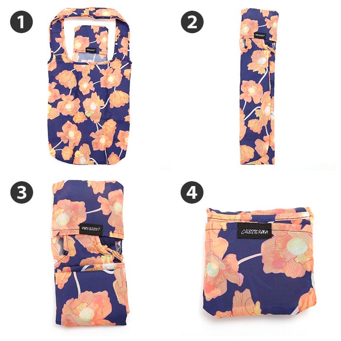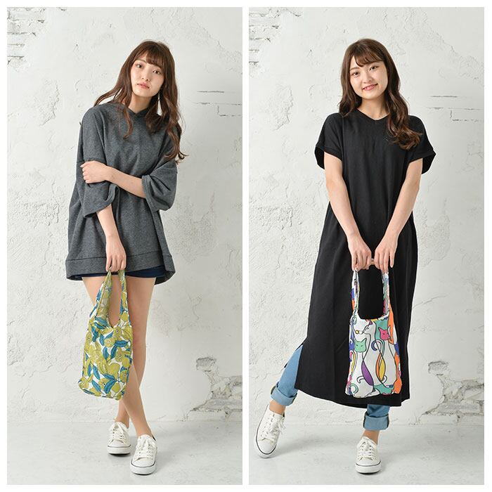 ・使わないときは小さく折りたたんで収納できる、持ち運びに便利な収納袋一体型のエコバッグ♪