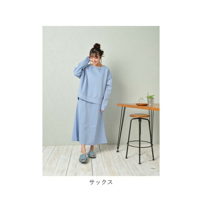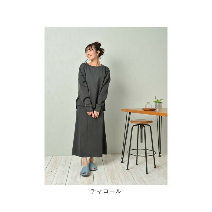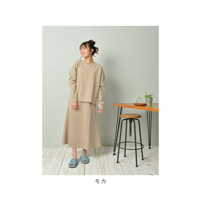 ・柔らかな肌触りでストレッチ性があり、スカートのウエスト部分はゴム仕様なのでルームウェアにも最適♪