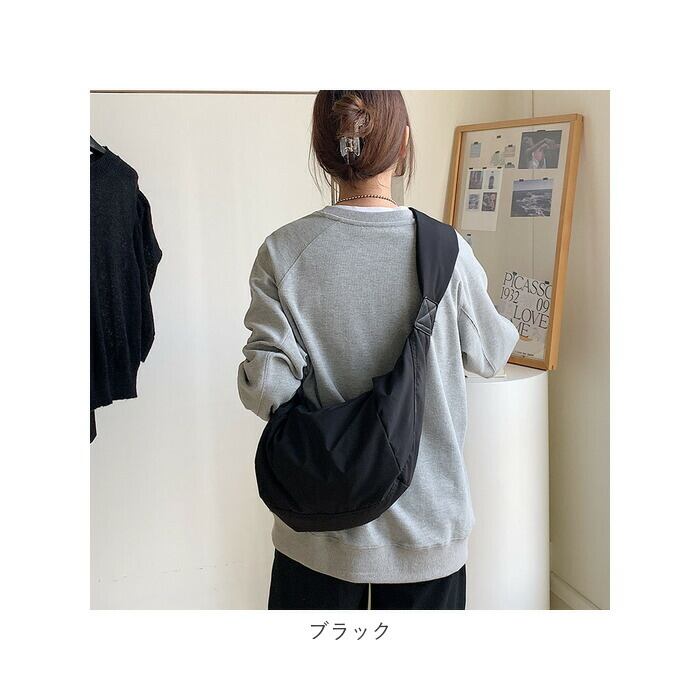 ・ショルダー部分は太めでバッグ本体と同じナイロン素材。肩が痛くなりにくいのもポイント。