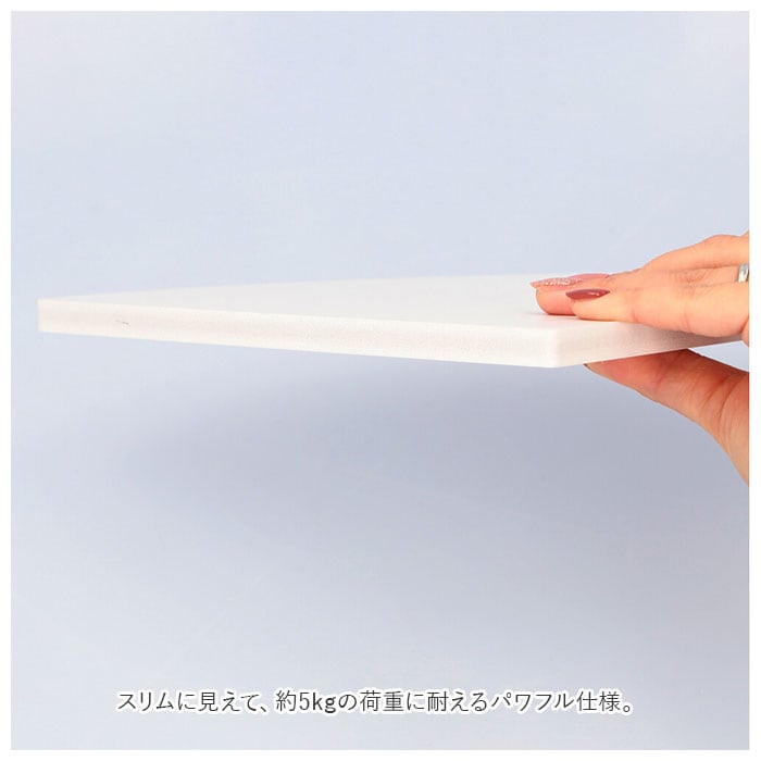 ・コーナーシェルフの素材には、丈夫で軽量なPVC素材を採用。スリムに見えて、約5kgの荷重に耐えるパワフル仕様。