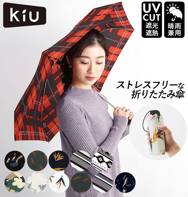 紫外線防止効果のある生地を使用しているので、雨傘としてはもちろん、日傘としてもお使いいただける晴雨兼用傘です。「KiU」のプロダクトではおなじみの「南国花鳥」・「オルテガ」など、豊富なカラーバリエーションも魅力的です