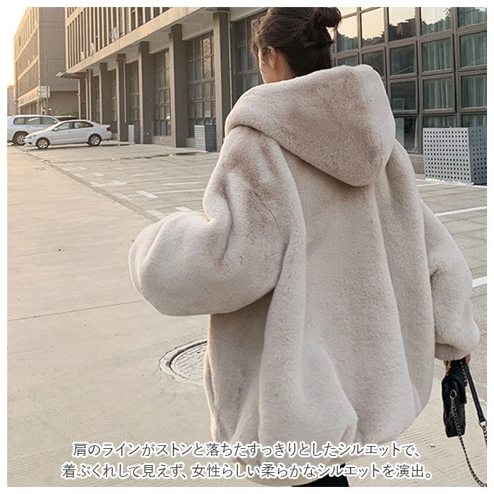 ・身頃はもちろん、袖やフードもふわふわのフェイクファーで包み込み、サッと羽織るだけでファッションに上品な素材感と季節感をプラス☆