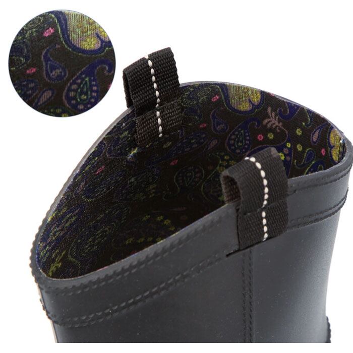 ・ブーツの内側にシックなペーズリー柄の裏生地を使用し、見えないところもさりげなくお洒落に。