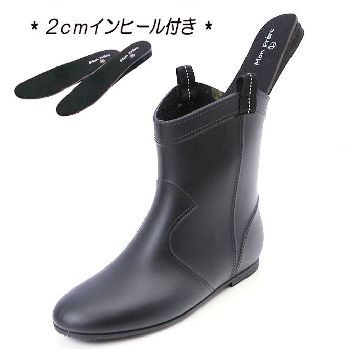 ・パッと見長靴には見えないお洒落な足元を演出しながら、2cmアップインヒール中敷き付きで脚長効果にも期待♪