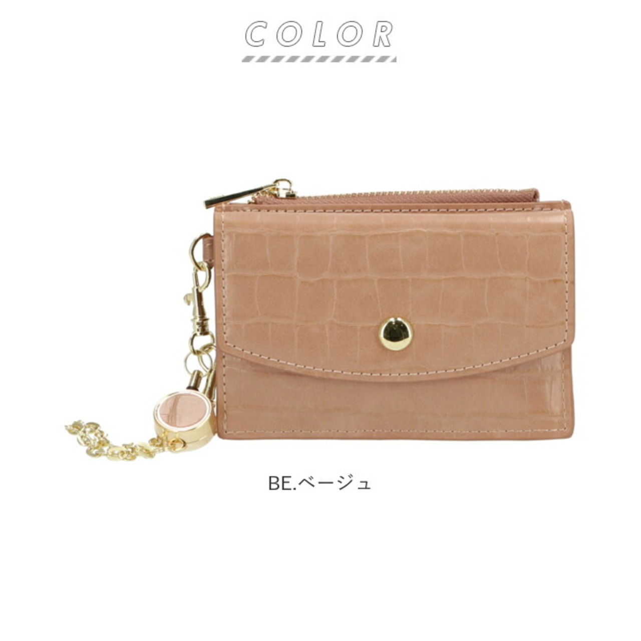 ・重厚で男性的に思われがちなクロコ柄に、ゴールド色のチェーンやカシメを合わせることで、しっとりと女性的でマイルドな雰囲気に。