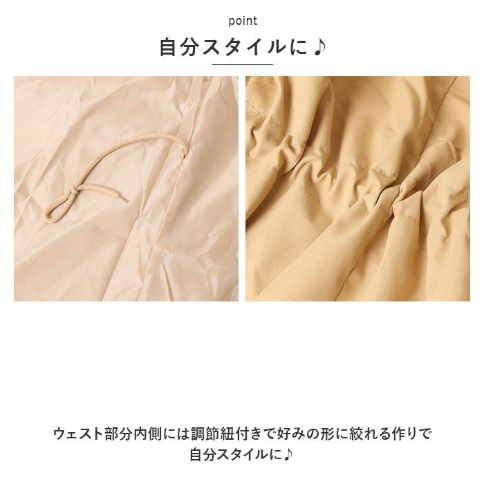 ・背面裾にはスリットがあり、ウェスト部分内側には調節紐付きで好みの形に絞れる作りで自分スタイルに♪
