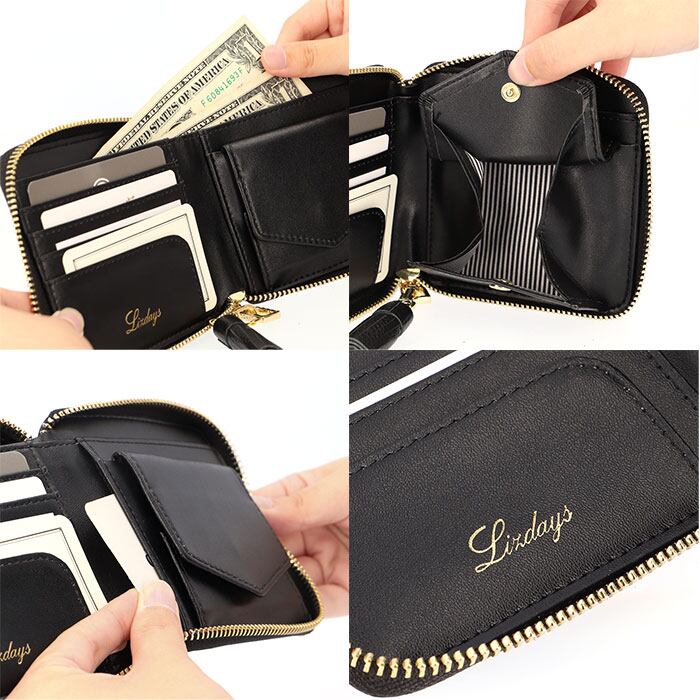 ・コンパクトで持ち運びやすい♪LIZ DAYSのタッセル付き二つ折りミニ財布。